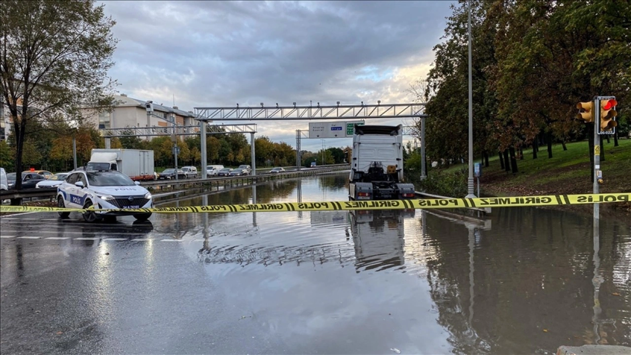 Turgut Özal Millet Caddesi'nde bir otomobil sağanak nedeniyle biriken suda mahsur kaldı.
