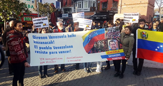 'Venezuela Dayanışma Komitesi' üyesi bir grup, Beşiktaş Meydan'da bir araya gelerek Venezuela'daki darbe girişimine karşı eylem düzenledi. “Direnen Venezuela halkı kazanacak” yazılı pankart açan ve Venezuela ile Venezuela Başkanı Nicolas Maduro'ya destek sloganları atan grup, ABD aleyhine sık sık sloganlar attı. Eylemde ayrıca Venezuela bayrağı da açıldı. Komite adına basın açıklamasını okuyan Göksel Kılınç, ABD'nin Venezuela Meclis Başkanı Juan Guaido'yu devlet başkanı ilan ettiğini hatırlatarak sözlerine başladı. Kılınç, ABD'nin bu kararına destek veren ülkelerin de "ABD'nin kuklası" olduğunu söyledi.