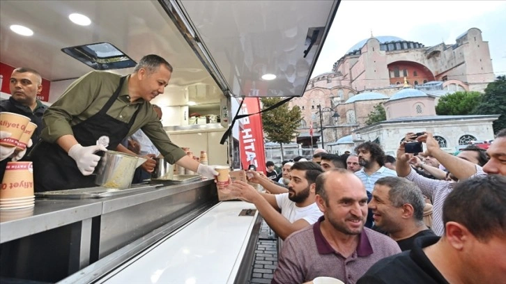 Cami çıkışında vatandaşlara çorba ikramında bulunan Yerlikaya, yaptığı açıklamada, "Ayasofya-i Kebir Cami-i Şerifi'nde Roman kardeşlerimizle buluştuk. Ayasofya’mızın huzur ikliminde, cami çıkışında birlikte içilen çorbanın tadı da bir başkaydı." dedi.