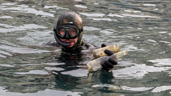 Dalgıçlar denizaltı kameralarıyla dibi tarayarak poşet, cam, plastik, teneke kutu, pet şişe gibi atıkları denizden çıkardı.