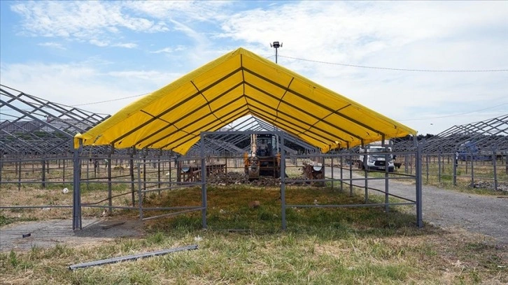 Çadırları kiralayan satıcılar da iş makineleriyle çalışma yaparak, zemine beton dökülmesi, yemliklerin yerleştirilmesi ve atık giderlerinin kazılması gibi hazırlıklar yaptı.