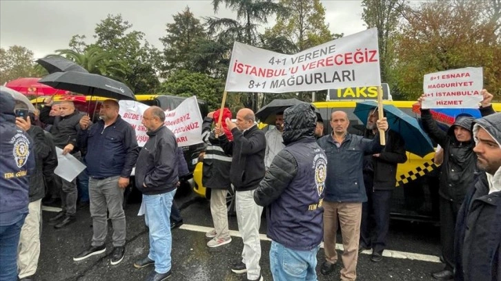 Bakırköy'deki UKOME önünde bir araya gelen grup, araçlarının 8+1 yerine 4+1 taksiye dönüştürülmesini istedi.
