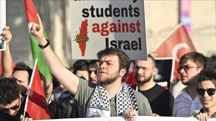 Meydanda toplanan öğrenciler, "Filistin'de soykırıma dur de", "Gazze'deki 12 üniversitenin tamamı İsrail tarafından yok edildi", "Filistin halkı yalnız değildir", "Çocuklar uyurken sessiz olunur, ölürken değil", "Özgür Filistin'in yanındayız" ve "İnsanlık ölüyor, dünya seyrediyor" yazılı Türkçe, İngilizce ve Arapça pankartlar taşıdı.