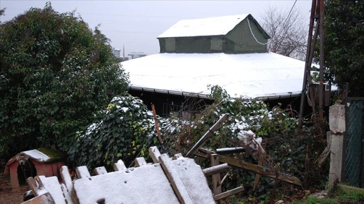 Yağışla çevredeki evlerin çatıları ve arabaların üstü karla kaplandı.