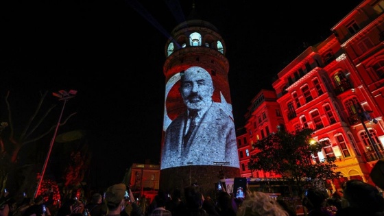 Türklerin Orta Asya'dan çıkışından bugüne kadar geçen dönemde tarihe adlarını yazdırmış önemli isimlere yer verilen gösteride, mapping show yöntemiyle kuleye görüntüler yansıtıldı.