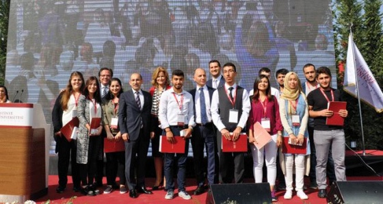 600’e yakın öğrenci sayısıyla ve Tıp Fakültesi, Sağlık Bilimleri Fakültesi ve Sağlık Hizmetleri Meslek Yüksekokulu ile 5 lisans ve 6 önlisans programıyla ilk akademik yıl açılışını gerçekleştiren İstinye Üniversitesi’nde heyecan doruktaydı. İstinye Üniversitesi Mütevelli Heyeti Başkanı Dr. Muharrem Usta, İstinye Üniversitesi Rektörü Prof. Dr. Melih Bulu, İstinye Üniversitesi Tıp Fakültesi Dekan Vekili Prof. Dr. Oktar Asoğlu, Sağlık Bilimleri Fakültesi Dekanı Prof. Dr. Füsun Terzioğlu ve Sağlık Hizmetleri Meslek Yüksek Okulu Müdürü Yrd. Doç. Dr. Burak Önal’ın yanı sıra üniversite hayatına atılan öğrenciler ve aileleri ile yoğun bir katılımın gerçekleştiği törende konuşan İstinye Üniversitesi Rektörü Prof. Dr. Melih Bulu, “Türkiye’ye yeni bir vakıf üniversitesi kazandırmanın haklı gururunu yaşıyoruz. Bu sene 600 kadar öğrenciyle başlıyoruz. Sahip olduğumuz, en iyiye yakın, ideal kadromuza ulaştık bile, daha da geliştireceğiz. Öğrencilerimize çok iyi bir eğitim vermeyi planlıyoruz. Sadece bilimsel eğitim değil, bir taraftan bilgiyle donanırken bir taraftan da dünyaya ve ülkemize faydalı bireyler olmaları için uğraşacağız. Yani onların hem maddi hem manevi yönünü olabildiğince yükseltmek gibi bir idealimiz var. Daha spesifik olarak değerlendirildiğinde üniversitemiz girişimcilik ekosistemini daha başlarken oluşturdu. Hocalarımızın da yardımıyla öğrencilerimiz birlikte projeler üretecekler ve bunları alana indirecekler. Daha okurken onları hem stajla hem yarı zamanlı çalışmayla alanda olabildiğince baştan pratiğe sevk edeceğiz. Uluslararası bağlantılarımız da çok önemli. Başlar başlamaz uluslararası öğrencilerimizi bünyemize kattık. 0nlarla birlikte bir yapı oluşturduk. Yani yeniyiz ama aslında değiliz. Çünkü arkamızda özellikle sağlık sektöründe son 25 yıldır Türkiye’nin tecrübesi olan Medical Park Grubu’nun birikimi var. Özellikle sağlıkla ilgili bölümlerde büyük avantaj sağlıyoruz. Ama bu, bizim sadece sağlık üniversitesi olacağımız anlamına gelmez. Yavaş yavaş diğer bölümleri de açarak hemen hemen her konuda eğitim veren şimdiden Türkiye’nin önde gelen üniversitelerinden biri olmayı hedefliyoruz” diye konuştu.