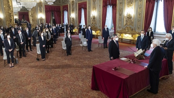 Cumhurbaşkanı Sergio Mattarella'ya dün 23 kişilik kabinesini sunan ve onay alan Başbakan Draghi, bugün bakanlarıyla Cumhurbaşkanı huzurunda tek tek yemin ederek göreve başladı.