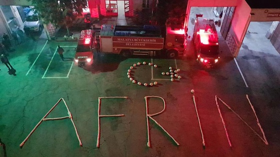 Malatya'da itfaiye ekipleri, Türk Silahlı Kuvvetlerinin (TSK) Afrin'de yürüttüğü Zeytin Dalı Harekatı'nda görev yapan askerlere destek vermek amacıyla koreografi hazırladı.