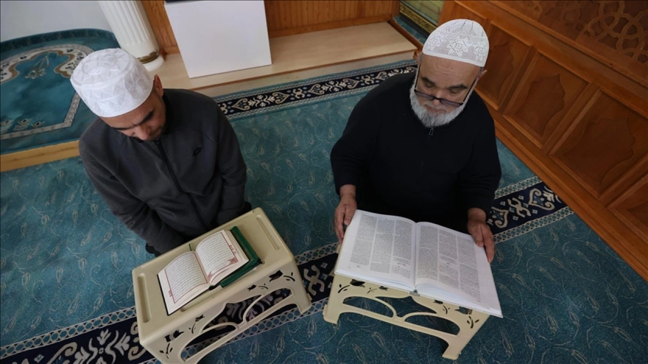 Karakaşbey Camisi'nde itikafa giren emekli imam Hüseyin Yazıcı ile güvenlik görevlisi Fatih Başkurt, ramazanın son günlerinde kendini ibadete adadı.