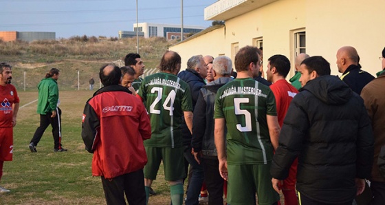 Türkiye Masterler ve Veteranlar Futbol Ligi (TMVFL) 5 .haftasında Değirmendere Spor tesislerinde oynanan karşılaşmanın ilk yarısı golsüz geçti. İkinci yarının 45'inci dakikasında yeşil beyaz formalı oyuncu Hüseyin'in attığı golle Aliağa Masterler, Didim Masterler karşısında 1-0 öne geçti. Maçın son dakikalarında Didim Masterler oyuncusu Hüseyin faul yapınca, Aliağa Masterler kalecisi Recep rakibine kafa attı.