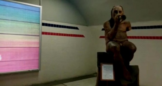 İzmir’de, en yoğun kullanılan metro istasyonlarından İzmirspor durağına yerleştirilen yarı çıplak ahşap müzisyen heykeli, herkesin dikkatini çekti. Fahrettin Altay ve Evka 3 arasında yolculuk yapan ve İzmirspor durağında inenler yarı çıplak heykeli gördüğünde tepkisini dile getirdi.