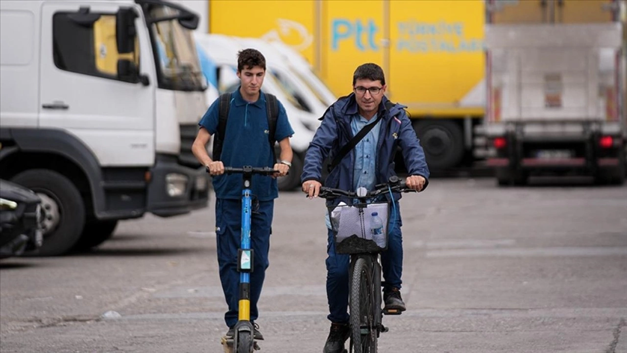 Baba bisikletle oğlu skuterle