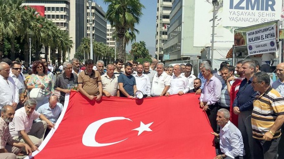 İzmir Elazığ Kültür ve Dayanışma Derneği ile bazı sivil toplum kuruluşlarının öncülüğünde cuma namazının ardından Konak Meydanı'nda bir araya gelen vatandaşlar, burada büyük bir Türk bayrağı açtı, terör örgütü PKK aleyhine sloganlar attı.