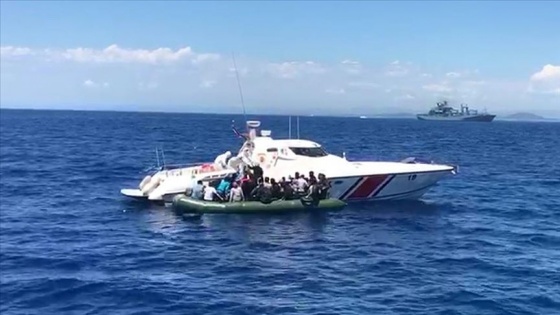 İzmir'in Dikili ilçesinde Yunan Sahil Güvenlik unsurları tarafından Türk karasularına geri itilen 56 sığınmacı kurtarıldı.