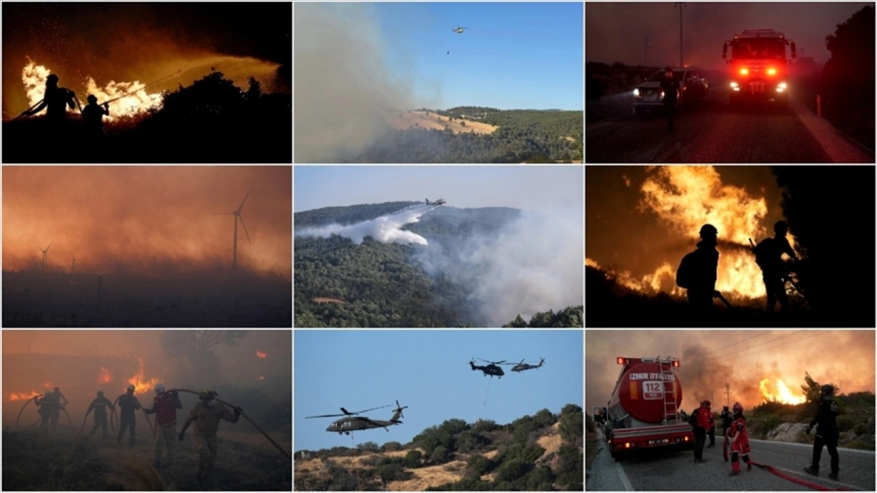 İhbar üzerine bölgeye İzmir Orman Bölge Müdürlüğüne bağlı 6 uçak, 19 helikopter, 39 arazöz, 14 su ikmal aracı ve 4 dozer ile itfaiye ekipleri sevk edildi.