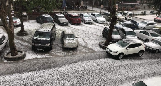İzmir'in Tire ilçesinde öğle saatlerinde başlayan sağanak yağış bir anda yerini doluya bıraktı. Yaklaşık 20 dakika süren dolu yağışıyla, ilçe kar yağmış gibi bir anda beyaza büründü.