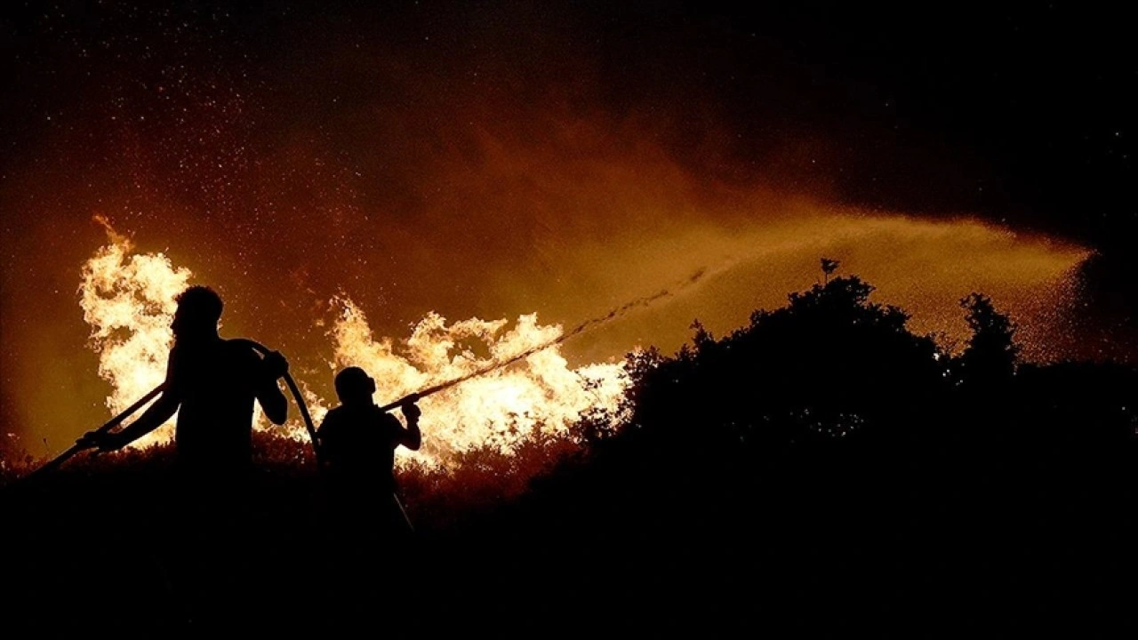 Havanın kararmasıyla ekiplerin karadan müdahalesi sürüyor. Söndürme çalışmalarına vatandaşlar da destek veriyor.
