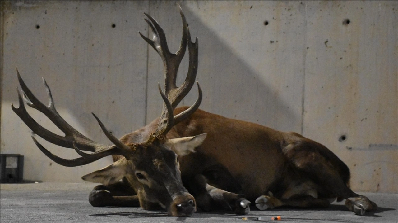 Doğa Koruma ve Milli Parklar Müdürlüğü ekiplerinin müdahale ettiği kızıl geyiğin İzmir Büyükşehir Belediyesi Doğal Yaşam Parkı'nda bulunan klinikteki tedavisi sürüyor.