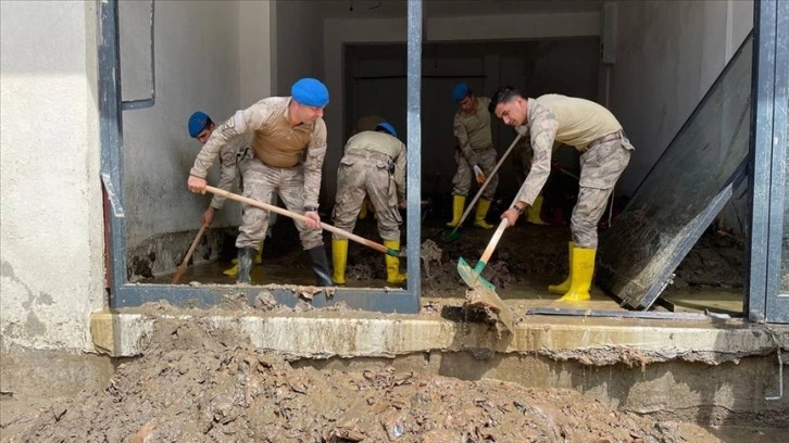 Türkiye'nin farklı illerinden gelen jandarma ekipleri, sel felaketinden etkilenen Kastamonu'nun Bozkurt ilçesinde yaraları sarmak için canla başla çalışıyor.