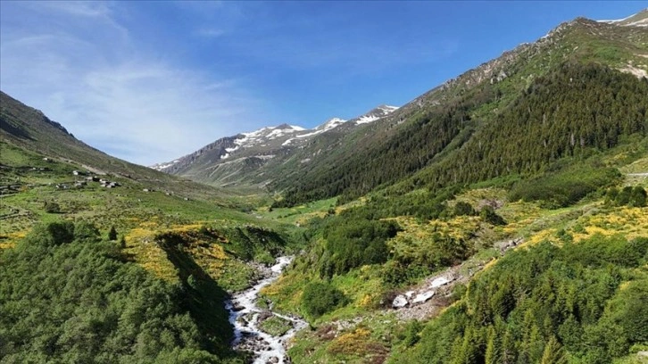 Çamlıhemşin ilçe sınırlarında bulunan Kaçkar Dağları Milli Parkı'nın yüksek kesimlerindeki kar erimeye devam ederken, biraz daha alt bölgelerde ise rengarenk çiçekler bitki örtüsünü kapladı.