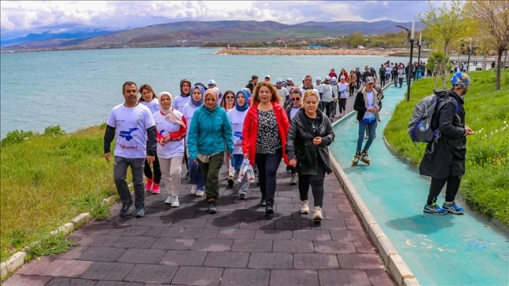 Göl çevresini 15 günde yürümeyi hedefleyen kadınlar, etkinliğin ilk gününde Gevaş ilçesine doğru yürüyüşe geçti.
