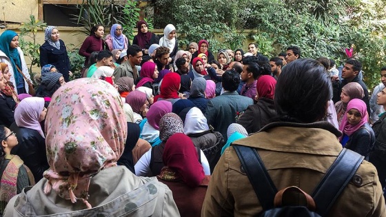 Mısır'daki Kahire Yunus Emre Enstitüsü'nde verilen Türkçe kursuna kayıt yaptırmak isteyen Mısırlılar, bina önünde izdihama neden oldu.