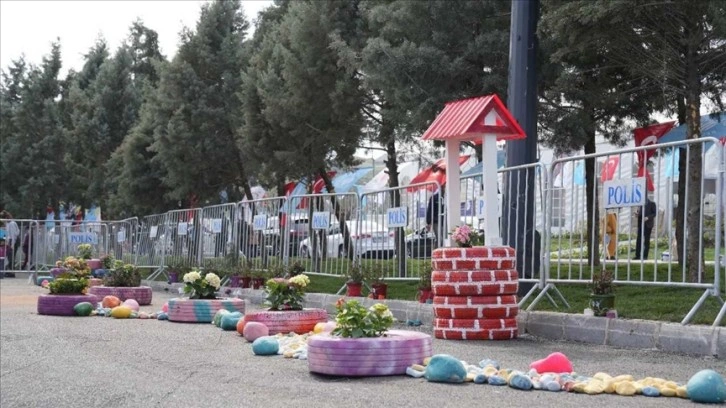 Ümraniye Belediyesi Kadın ve Aile Müdürlüğü Geleneksel Akademi Üretim Atölye Şefi Sema Demiryuğuran, depremzede çocukların asli ihtiyaçlarının dışında konteyner kenti yuva sıcaklığında hissetmeleri için bahçe peyzajı olarak, kullanılmış 65 araba lastiği ve 6 varili geri dönüşüme kazandırdıklarını belirtti.