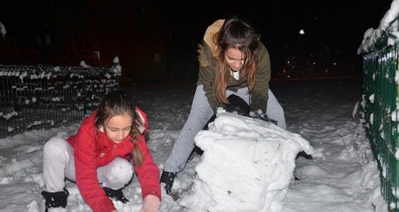 Öğleden sonra yüksek kesimlerde etkili olan kar, akşama doğru ilçe merkezini beyaza bürüdü.