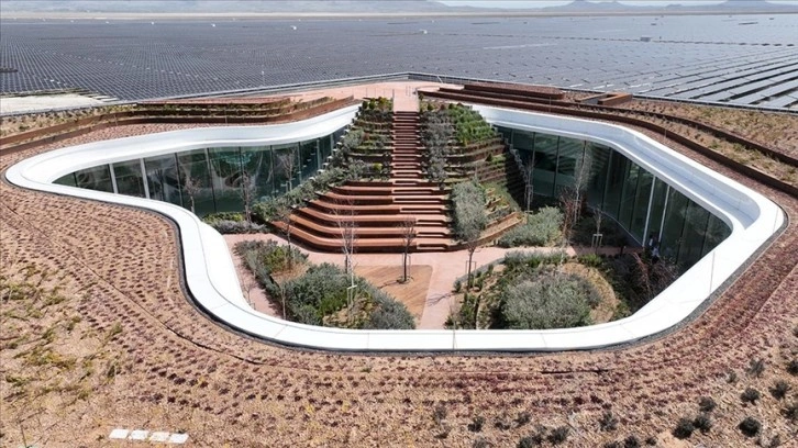 Konya'nın Karapınar ilçesinde bulunan santralin işletilmesi amacıyla bir çok teknik altyapı ve dijital araçlarla donatılan bina, fütürist tasarımıyla dikkati çekiyor.