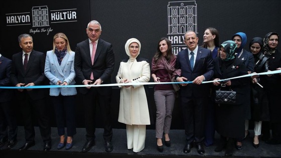 Açılış kurdelesini katılımcılarla birlikte kesen Emine Erdoğan, Kalyon Kültür'ün Türkiye'nin ve İstanbul'un kültür-sanat hayatına katkıda bulunacağına inandığını söyledi.