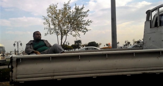 Olay, Tekirdağ’ın merkez ilçesi Süleymapaşa’ya bağlı Hürriyet Mahallesi mevkiinden Malkara istikametine giden bir kamyonetin kasasında meydana geldi. Hareket halindeki kamyonetin kasasının kapağına yaslanmış bir vaziyette yolculuk yapan vatandaşın görüntüleri akıllara durgunluk getirdi. Kamyonetin kasasının en arkasına yaslanıp, hiçbir yere tutunmadan elindeki atıştırmalıkları yiyerek adeta ölüme meydan okuyan şahıs, diğer sürücülerinde uyarılarını dikkate alamadan tehlikeli yolculuğuna devam etti. Amatör kameralar tarafından görüntülenen şahıs, uyarılar üzerine hiçbir yanıt vermeden şaşkın bakışlar arasından gözlerden kayboldu.