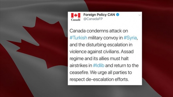 Kanada'nın, Suriye'deki Türk askeri konvoyuna saldırıyı ve sivillere yönelik şiddetin rahatsız edici boyuttaki yükselişini kınadığı belirtilen açıklamada, "Esed rejimi ve müttefikleri, İdlib'deki hava saldırılarını durdurmalı ve ateşkes durumuna geri dönmelidir. Tüm tarafları, tansiyonu düşürme çabalarına saygı göstermeye çağırıyoruz." ifadeleri kullanıldı.