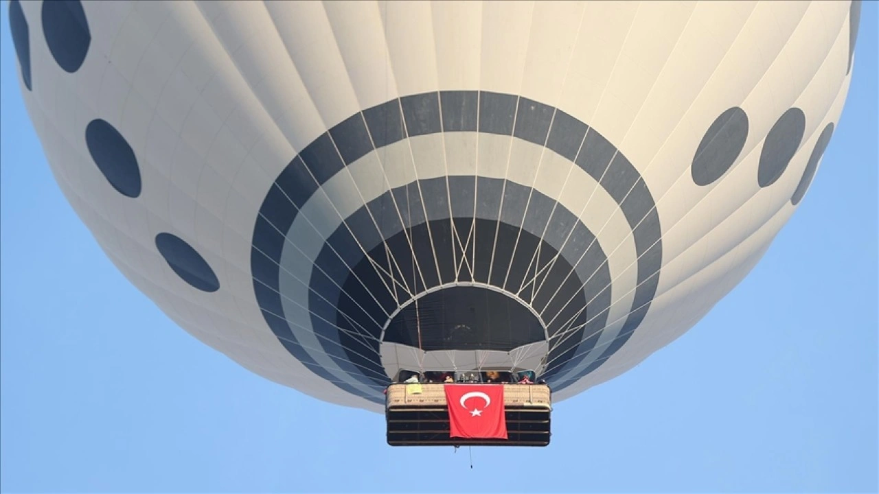 Doğal, tarihi ve kültürel zenginlikleriyle UNESCO Dünya Mirasları listesinde yer alan Kapadokya'da, sıcak hava balonları Türk bayrakları ile uçuş gerçekleştirdi.