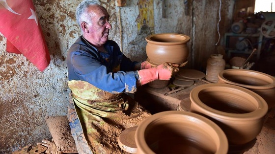 Aksaray'ın Güzelyurt ilçesinde Metin Nalbantoğlu, oğlu Murat ile bölgenin toprağından yaptığı güveç, çanak, çömlek ve testileri yurt içinin yanı sıra ABD ve Arap ülkelerine de gönderiyor.