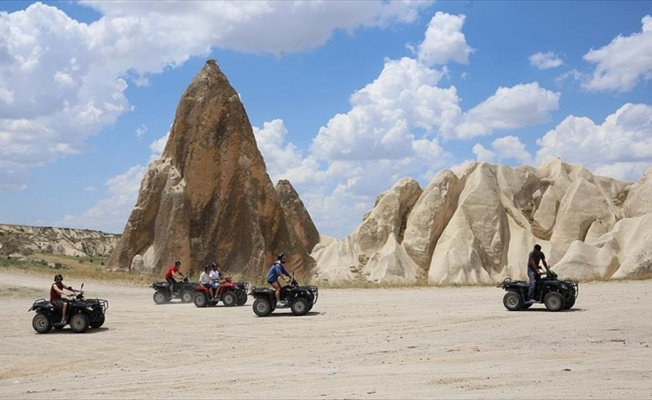 Tatil için Kapadokya'yı tercih eden bazı konuklar açık hava müzeleri ve ören yerlerini ziyaret ederken bazıları da doğal kaya oluşumlarıyla kaplı arazilerde at ve ATV araçlarla düzenlenen turlara katılıyor.