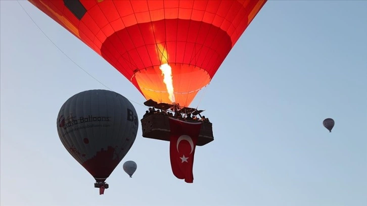 Kapadokya'da balonlar Türk bayraklarıyla uçtu
