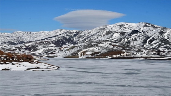 Yıldız Dağı Kış Sporları Turizm Merkezi’ne de yakın olan gölet, yüzeyini kaplayan buz tabakası ve çevresindeki karla kaplı tepelerin zirvesinde oluşan sis bulutuyla adeta görsel şölen sundu.