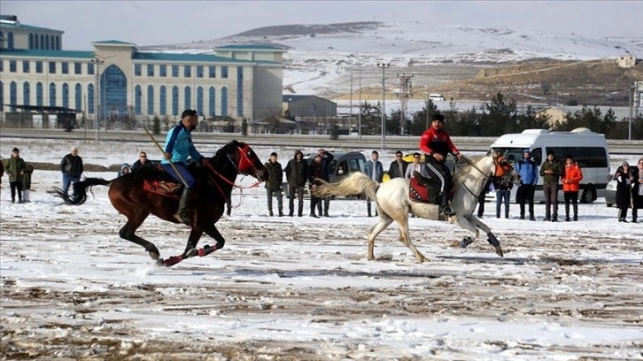 İlde faaliyet gösteren 21 Şubat Atlı Spor Kulübü ve Erzurum Korkutata Atlı Spor Kulübü sporcuları, sabah hava sıcaklığının sıfırın altında 5 derece olmasına karşın karla kaplı alanda cirit oynadı.