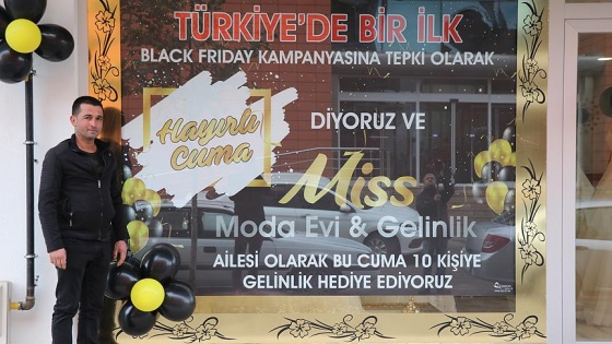 Erzincanlı bir esnaf, ABD'de ve birçok ülkede indirim kampanyaları kapsamında düzenlenen ve "Black friday (Kara cuma)" tanımlamasına tepki göstererek "Hayırlı cuma" adı altında başlattığı kampanyayla ihtiyaç sahibi 10 kişiye gelinlik hediye edeceğini duyurdu.