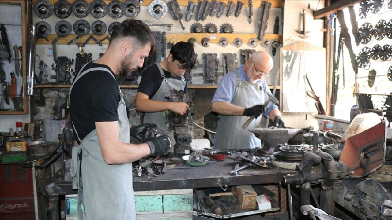 "Yılın Ahisi" seçilen Muhsin Ünal, "Yılın Kalfası" ödülüne layık görülen yeğeni Cihan Ünal ve "Yılın Çırağı" 15 yaşındaki Fatih Öncü ile Osmanlı padişahlarından 3. Selim'in sadrazamı İzzet Mehmet Paşa tarafından 1796'da yaptırılan tarihi Demirciler Çarşısı'nda demire şekil veriyor.
