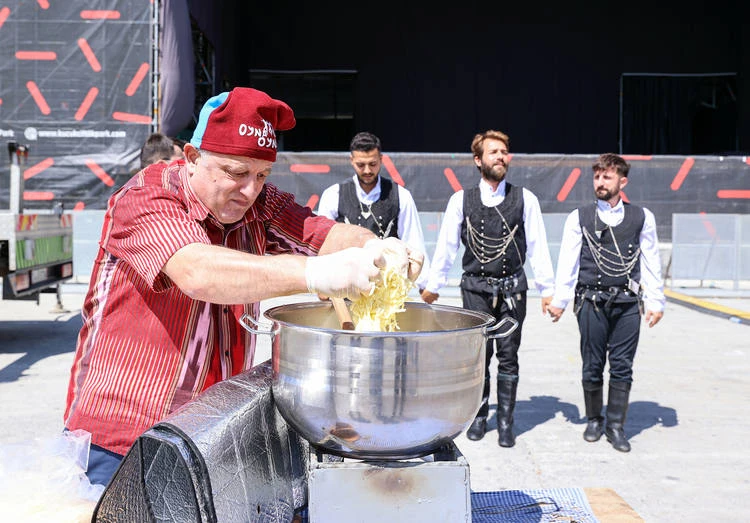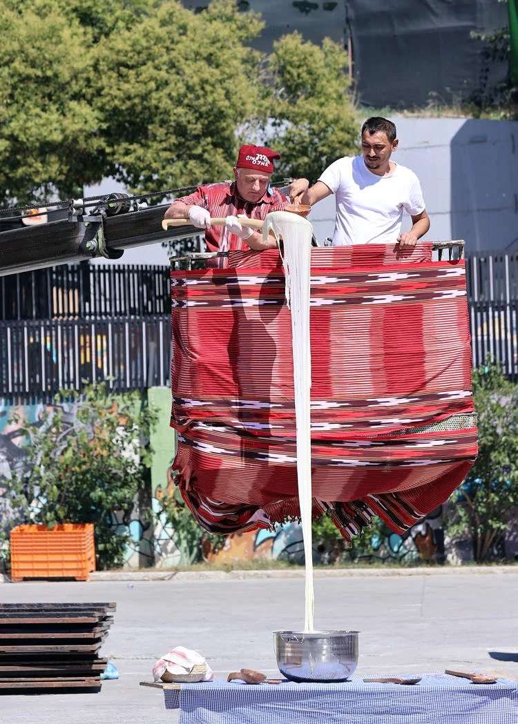 Şişli'de Adem Kılıç, 18 Eylül'de düzenlenecek "Maçka'da Buluşalım - Bir Karadeniz Şöleni" festivali öncesinde Karadeniz mutfağının vazgeçilmezleri arasında yer alan kuymakta rekor denemesi yaptı.