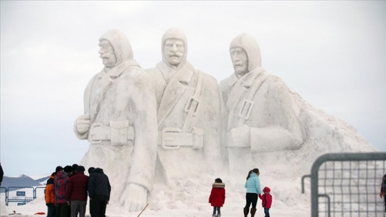 Cıbıltepe Kayak Merkezi'nin 1. etap oteller bölgesine yaklaşık 200 kamyon kar taşınarak yapılan şehit askerlerin portrelerinin yansıtıldığı heykeller, temsili yürüyüşün ardından protokol üyeleri tarafından açılacak.