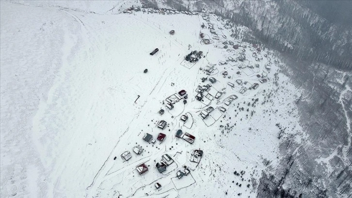 Beyaza bürünen yamaçlardaki çam ağaçları da yaylaya ayrı güzellik kattı.