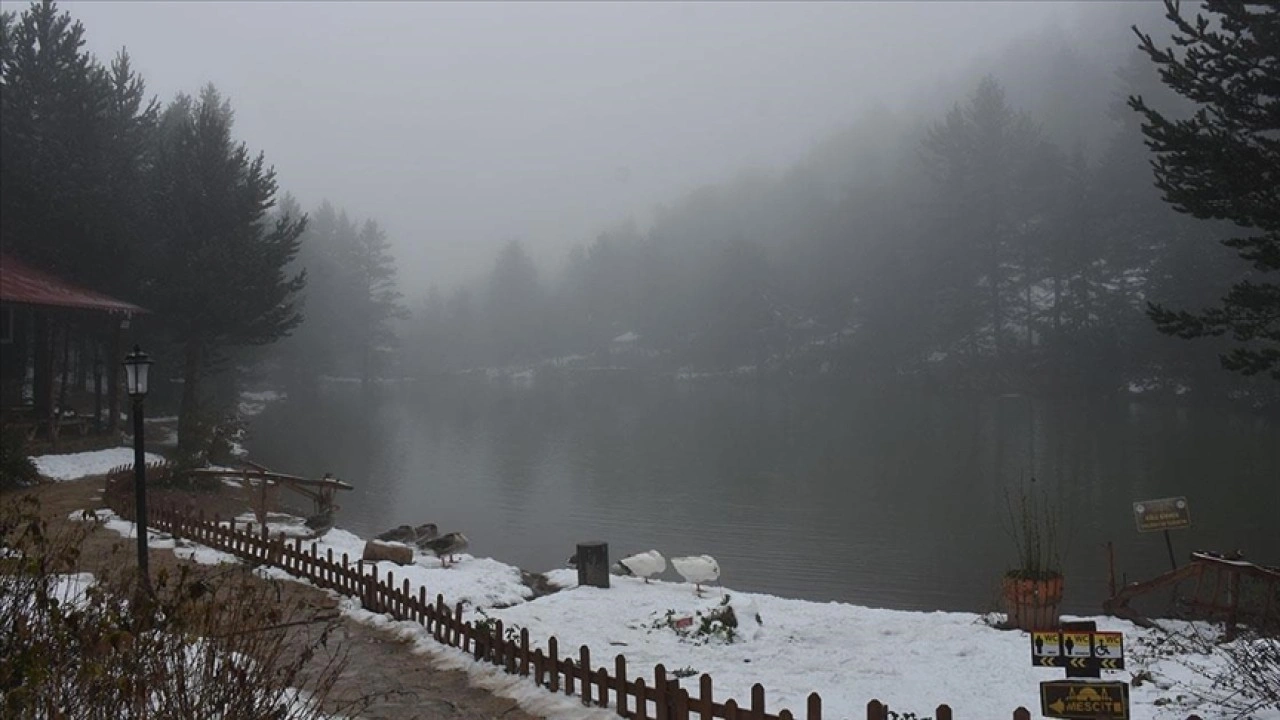 Kent merkezine 45 kilometre uzaklıkta, Zigana Dağı eteklerinde yer alan Limni Gölü Tabiat Parkı adını aldığı krater gölü, çevresindeki sarıçam, ladin ve köknar ormanları yağışla birlikte beyaza büründü.