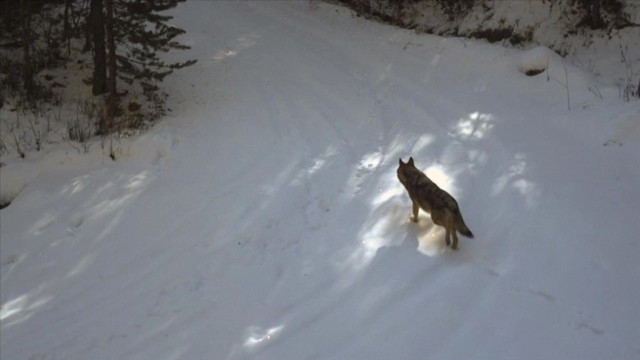 Bölgede biyolojik çeşitliliğin korunması amacıyla yürütülen proje kapsamında 7 kişilik ekip, hava sıcaklığının sıfırın altında 20 derece olduğu karla kaplı ormanlık ve dağlık arazide kurtları araştırmak için çalışma yapıyor.