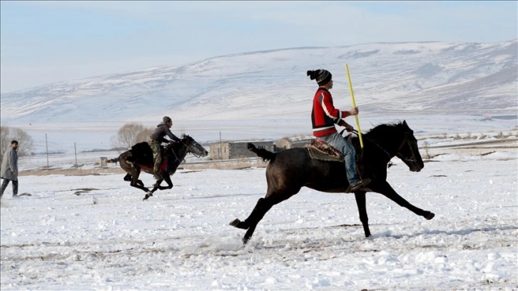 Selim ilçesinin Hasbey köyünde Hasbey Yıldızlar Atlı Spor Kulübü bünyesindeki genç sporcular, kar üstünde dostluk müsabakası yaptı.
