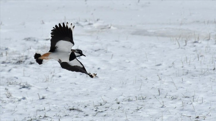 İlkbahar aylarında havanın ısınmasıyla bölgede sık görülen leylek, angut ve kız kuşu karla kaplı Hançerli düzündeki küçük su birikintilerinin üstünde yiyecek ararken görüntülendi.