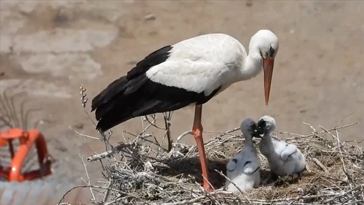 Mart ayının sonlarına doğru bölgeye gelen leylekler, 35 günlük kuluçka döneminin ardından yumurtalarından çıkan yavrularını besliyor.