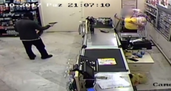 Güvenlik kamerası görüntülerinde yüzüne maske taktığı görülen soyguncunun tüm gasplarına bir elinde silahı, diğer elinde market poşetiyle gitmesi dikkat çekiyor. Bir görüntüde mesai saatinin bitmiş olması nedeniyle girişi kilitli olan kapıdan girmeye çalışan şüpheli, bir süre kapıyı zorladıktan sonra çıkış kapısına yöneliyor. Market çalışanı soyguncuyu fark ederek açık olan kapıyı kapatmaya çalışıyor ancak soyguncu silah zoruyla görevliye engel oluyor.