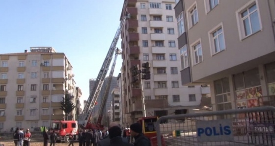 İtfaiyenin merdiven araçlarıyla balkonlardan girilerek evdeki değerli eşyalar çıkartıldı. Yunus Aparmanı'nın yıkımı için geniş güvenlik önlemleri alınıyor.